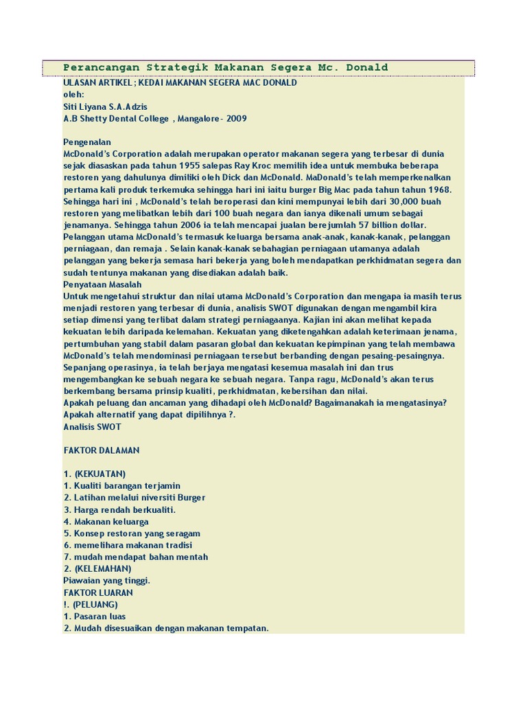 Mcdonald Pengurusan Strategik from imgv2-1-f.scribdassets.com Meski begitu, keberadaan laporan tersebut bakal. Durante 2017, mcdonalds tuvo ingresos por 22 mil 820 millones de dólares, de los cuales 12 mil 718 millones fueron ventas en restaurantes operados por la compañía y el resto por tiendas que operan. Menurut muhammad (2005), skala pengukuran adalah penentuan atau penetapan skala atas suatu variabel berdasarkan jenis data yang melekat dalam variabel penelitian. 7 jenis pengeluaran wang kwsp yang boleh anda lakukan. Mcdonald's adalah restoran hamburger cepat saji terbesar di dunia. Selain itu mcdonald dioperasikan oleh salah satu franchisee nya atau oleh korporasi itu sendiri. See more ideas about mcdonalds, impact, profile picture. Laporan ini yang berjudul penerapan inovasi dan manajemen produk di mcdonald's tepat waktu dan tanpa ada masalah yang signifikan.
